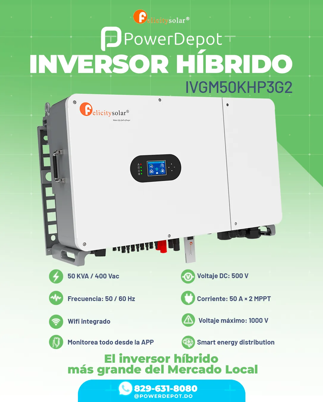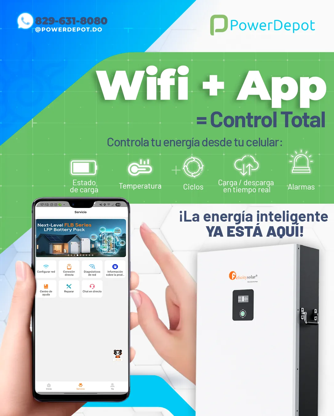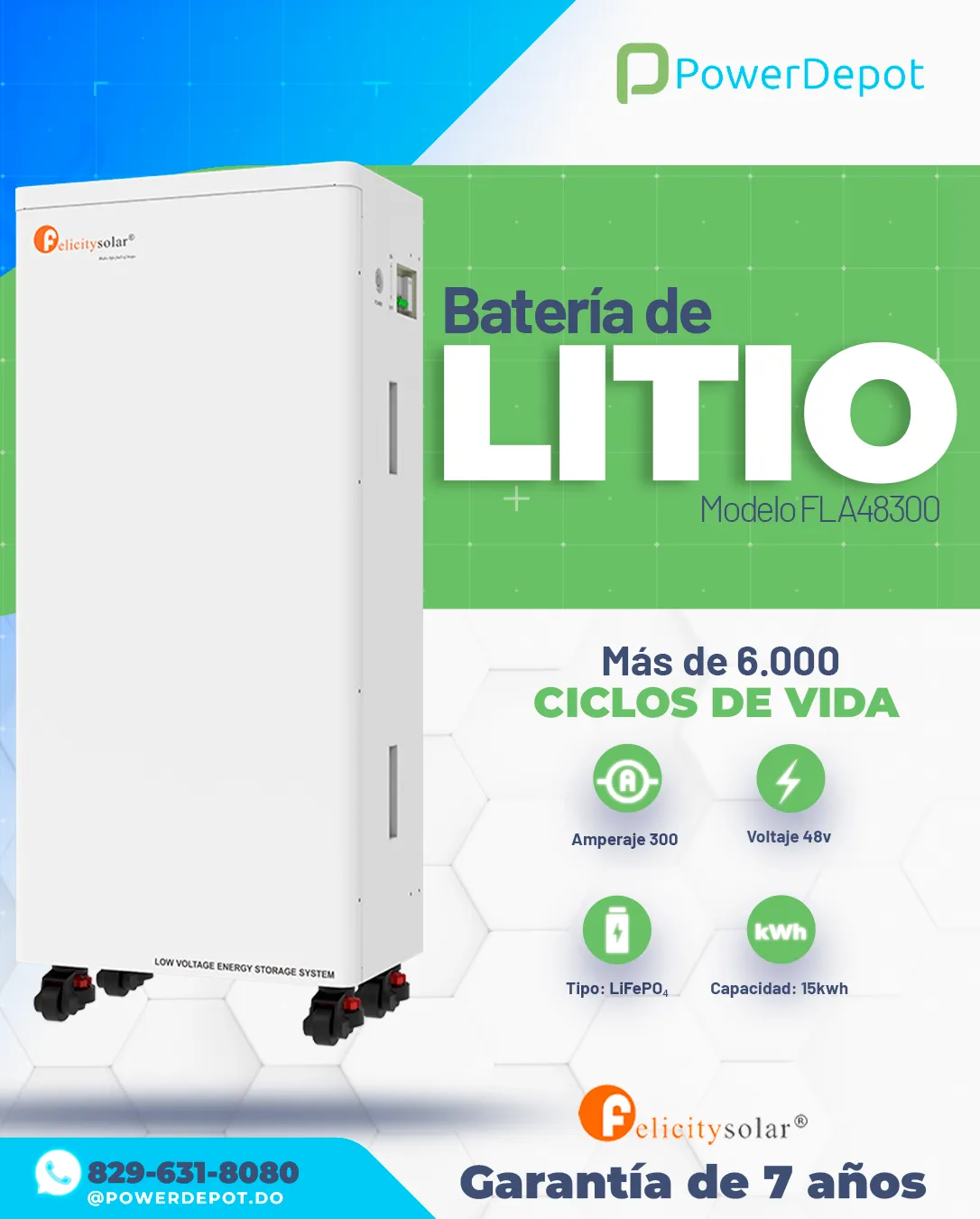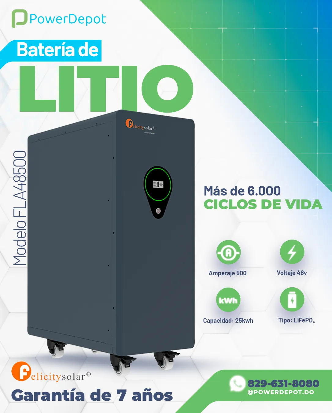 PowerDepot es un distribuidor dominicano especializado en baterías de litio, inversores y sistemas de respaldo FelicitySolar. Atendemos instaladores, empresas y hogares con soluciones confiables, soporte técnico local y acompañamiento antes y después de la compra.